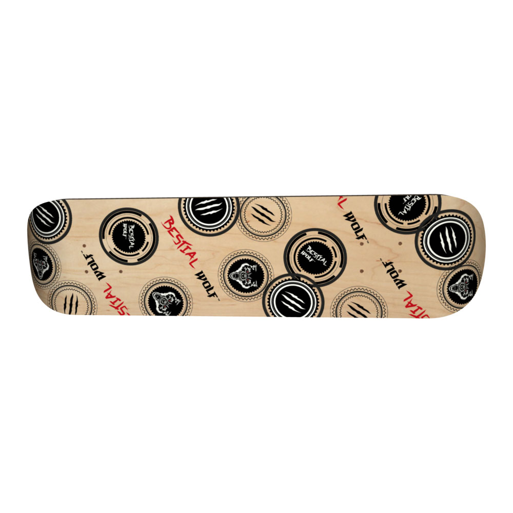 | board16 | Maple wood board, 7 layers. Board size: 7,75 x 31 in. Double concave board style. Designed with Bestial Wolf motif. |